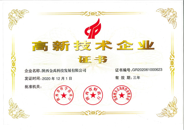 2020年12月1日,我公司順利通過由陜西省科學技術廳、財政部和稅務總局組織的高新技術企業(yè)認定評審,是自 2017 年公司獲得國家級高新技術企業(yè)資格以來,被復審認定為國家級高新技術企業(yè)。[查看詳情]